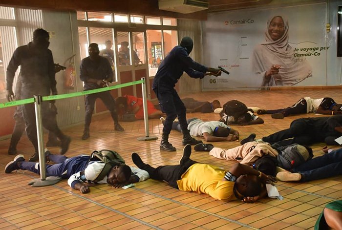 Au sein de la plateforme aéroportuaire, la panique s’installe. Malgré les cris des passagers visiblement apeurés, les différentes administrations mettent leur plan de riposte en place. Si la mise hors d’état de nuire des membres du commando est la priorité absolue, il faut aussi sécuriser l’infrastructure. Sapeurs-pompiers, police, gendarmerie, ASECNA, communication, se mobilisent.