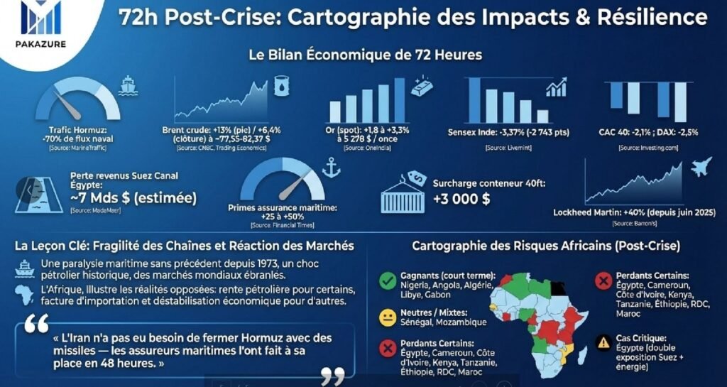 Selon une infographie réalisée par PAKAZURE (une IA développée par le Port Autonome de Kribi), le blocage du trafic au détroit d’Ormuz (par lequel transite près de 20 % du pétrole mondial), commence déjà à avoir des conséquences lourdes sur le trafic maritime mondial en général, et sur le Cameroun en particulier.